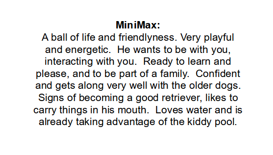 MiniMax – SOLD – male, at 11 weeks.