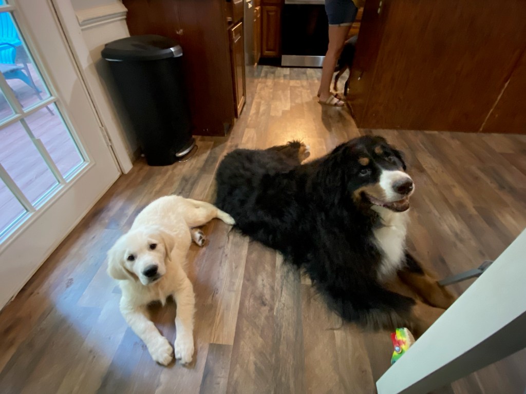 Zeke and his buddy Brent. 16 weeks.